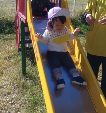 0歳児さんも入園当初よりすっかりお兄さんお姉さんになり、滑り台も少しずつ自分で滑れるようにまで成長。