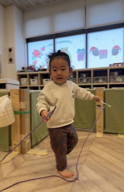 2歳児さんを中心に、毛糸遊びにみんな夢中なんです😊