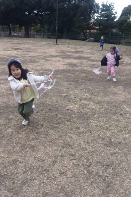 凧を持って、広場を思いっきり走り回る子どもたち。